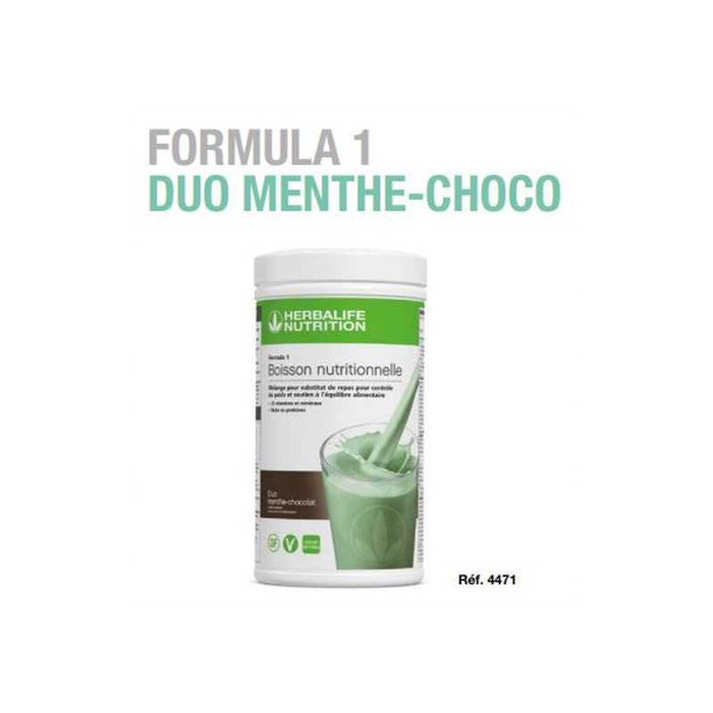 La saveur mentholée du Shake de Formula 1 Herbalife duo menthe chocolat est un excellent choix pour rafraichir vos papilles. Délicieux, crémeux et riche en nutriments, il remplace parfaitement un repas équilibré. Dans le cadre de votre programme minceur Herbalife, substituez deux repas par jour avec votre Shake Herbalife (petit-déjeuner et dîner ou petit-déjeuner et déjeuner en fonction de vos impératifs familiaux, sociaux ou professionnels).