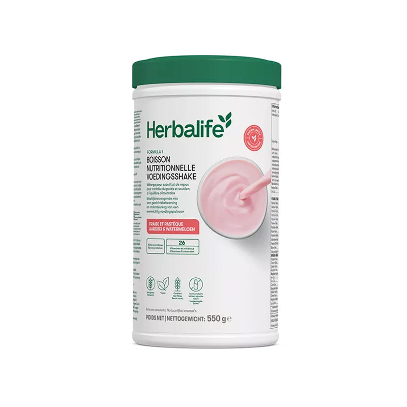 Boisson Formula 1 fraise pastèque. Découvrez ce substitut de repas végan et sans gluten. Un allié nutritionnel gourmand et équilibré.