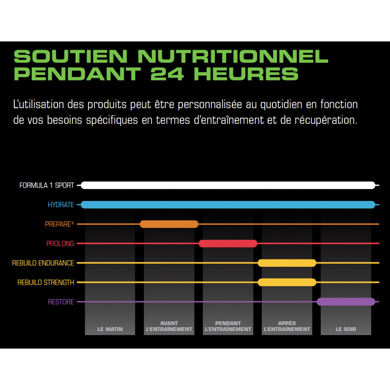 Pour un programme complet, pensez à bien vous hydrater (consultez notre gamme H24 Hydrate !) et à avoir une alimentation équilibrée tout au long de la journée. Le muscle se construit au repos, mais les matériaux de construction doivent être fournis juste après l'effort ! Vous verrez, cette rigueur fait toute la différence.